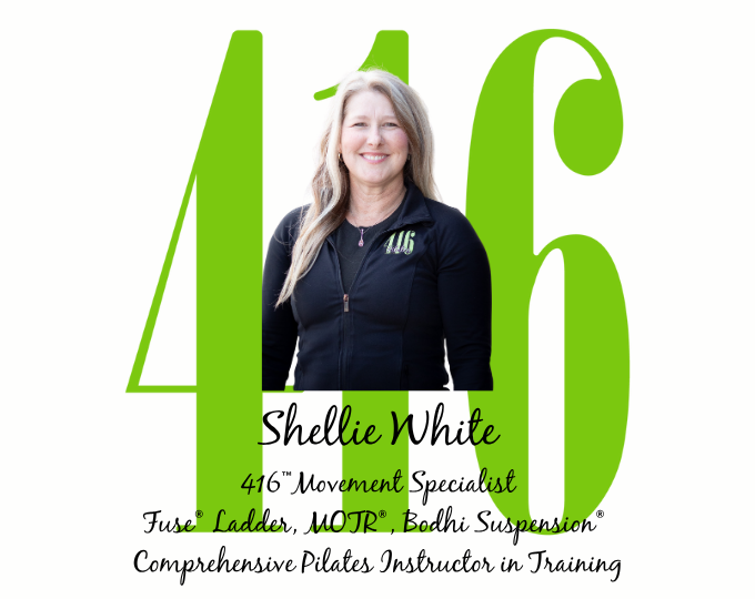 Shellie White is a passionate and experienced instructor at 416™ Pilates, dedicated to helping clients of all ages and abilities move with strength, confidence, and ease. With extensive training in Pilates, functional movement, and corrective exercise, Shellie focuses on creating safe, effective, and enjoyable sessions tailored to each client’s unique needs.